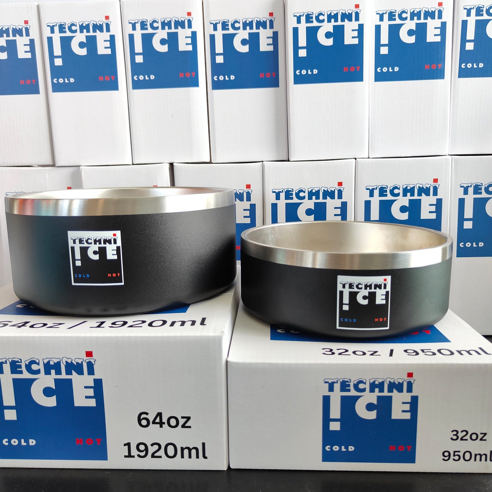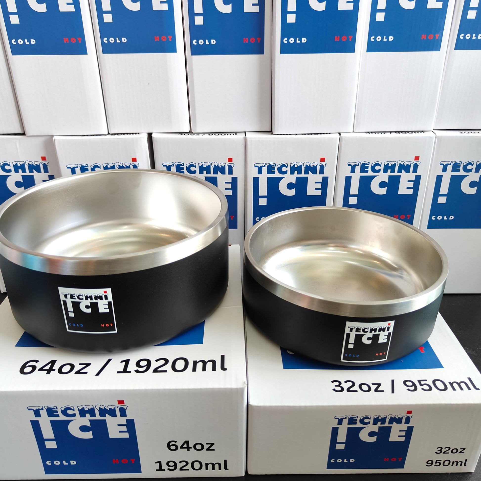 Techni Ice 950ml (32 oz.) + 1920ml (64 oz.) Dog Bowl Combo Black Stainless Steel 6 Years Warranty *fresh stock just arrived