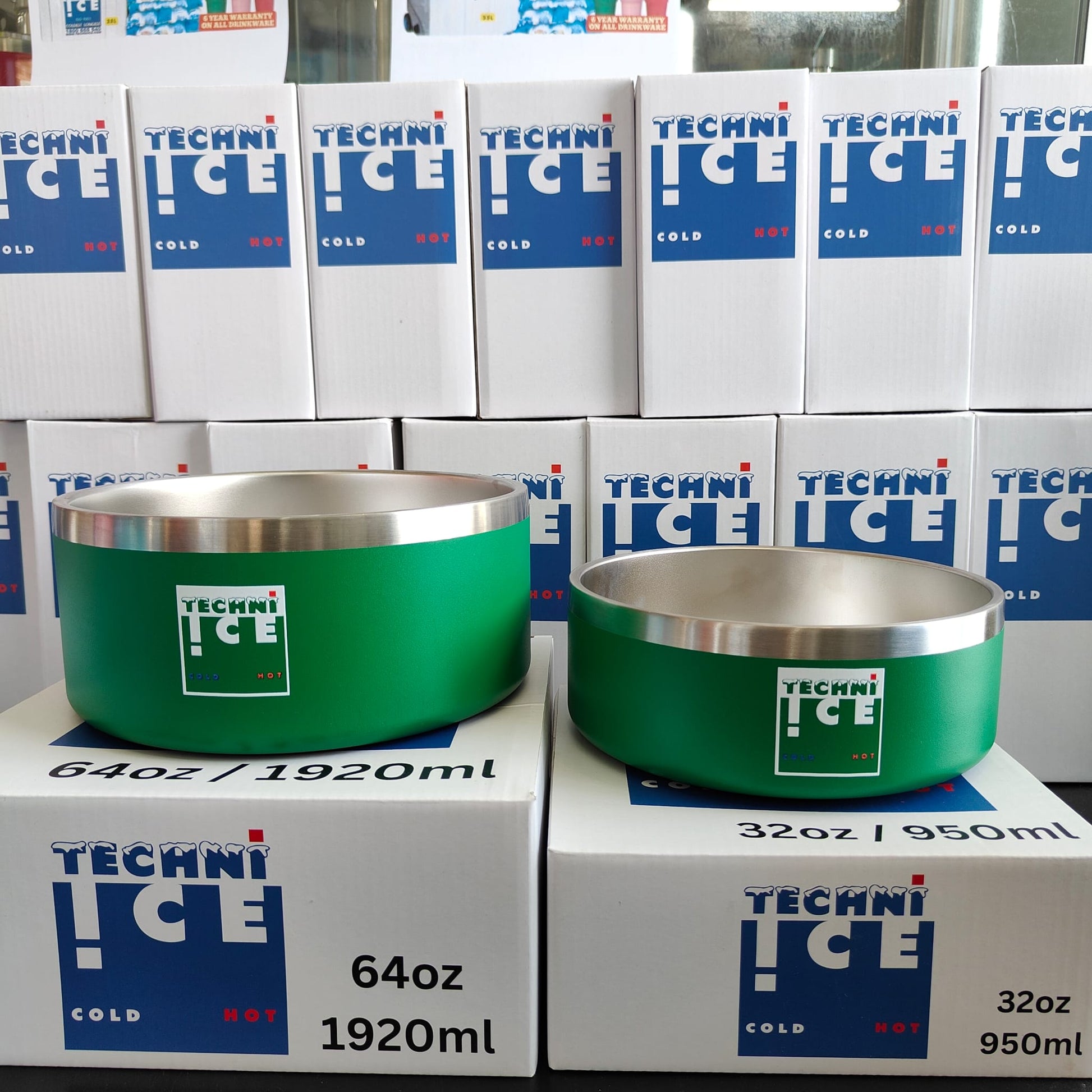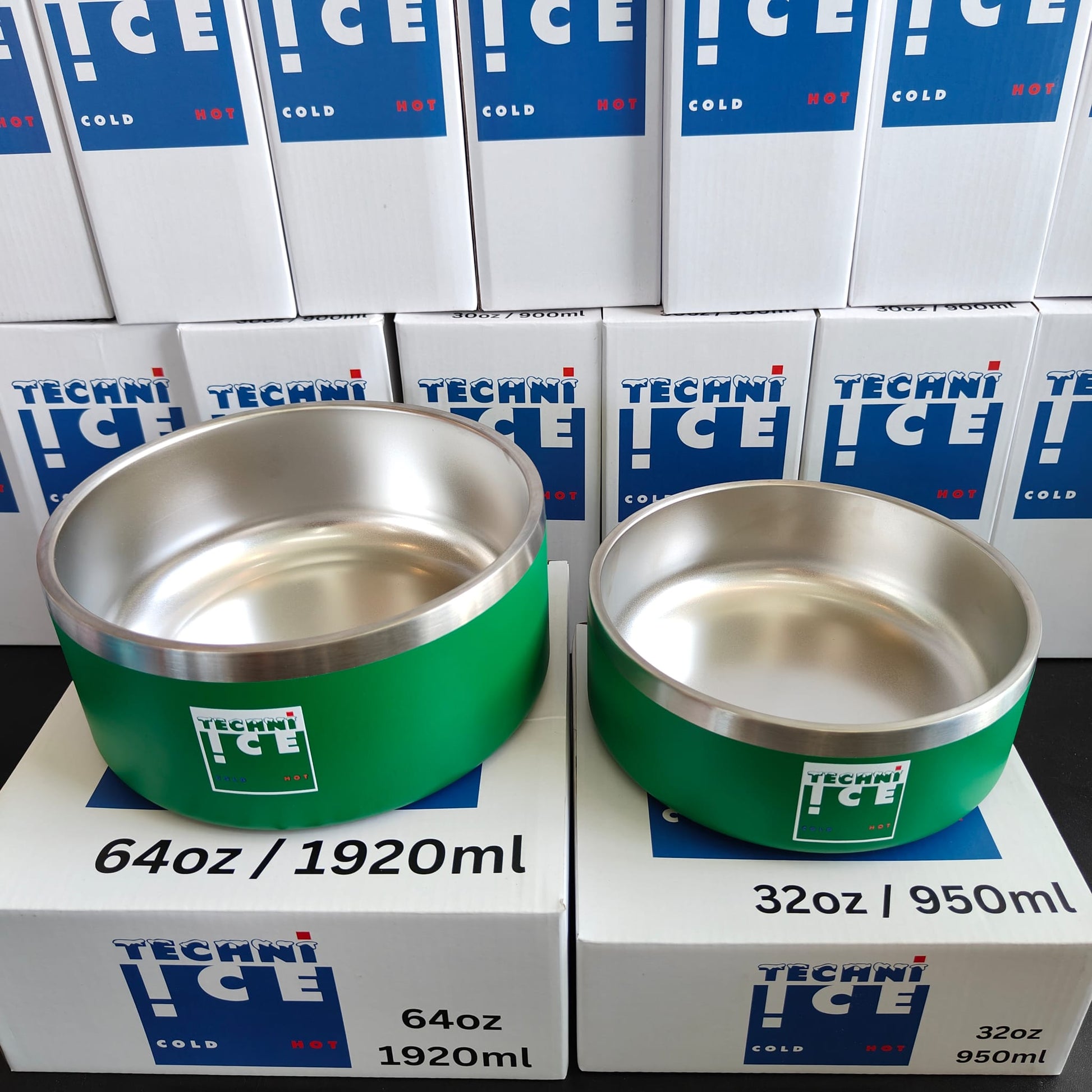 Techni Ice 950ml (32 oz.) + 1920ml (64 oz.) Dog Bowl Combo Emerald Stainless Steel 6 Years Warranty *fresh stock just arrived